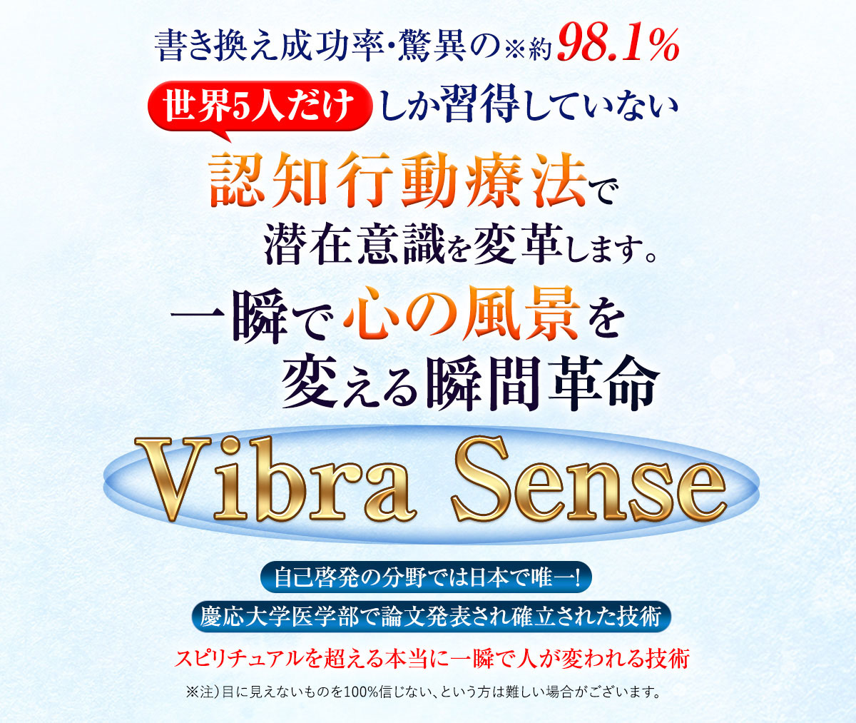 一度きりかもしれません。今すぐ、Vibra Senseに申し込み、