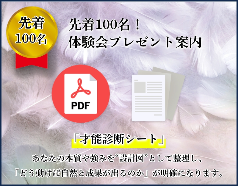 例えば、このような意識が体験&説明会で書き換えられるとしたら、あなたの人生に変化が起きることは、想像にたやすいと思います。